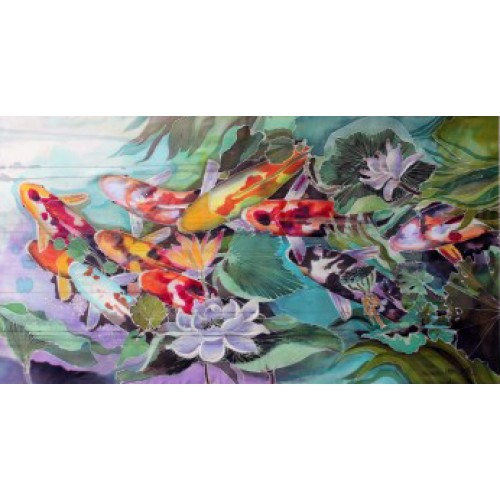 He expresses his love of nature by putting landscape sceneries, fishes, mountains, rivers, flowers, rocks & villages into pieces of batik. Having grown up in a fishing village in Terengganu, he likes to paint fishes especially the Japanese Koi Fish in Batik Color.